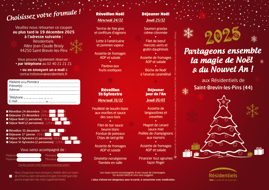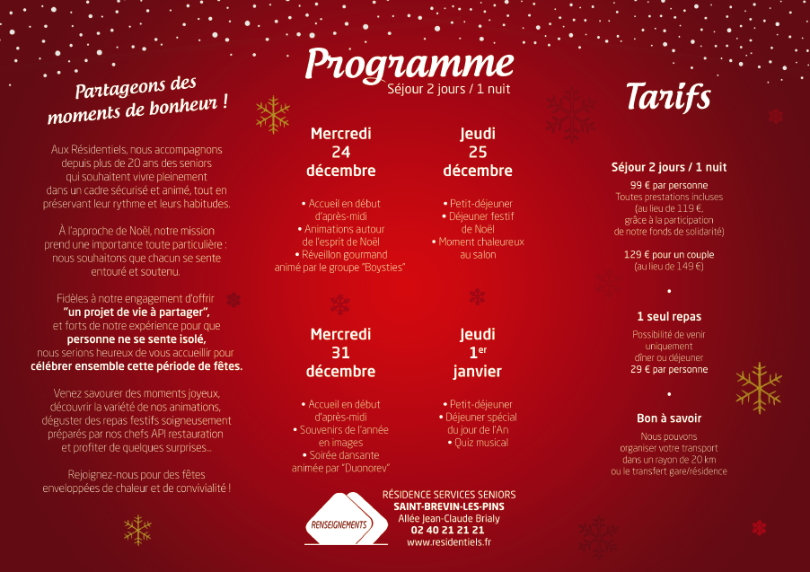 Fidèles à notre engagement d’offrir un projet de vie à partager et forts de notre expérience pour que chacun soit entouré, nous serions heureux de vous accueillir pour célébrer ensemble cette période de fêtes.