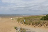 Longue plage de sable accessible à tout public, en bordure de la forêt de la Pierre Attelée.